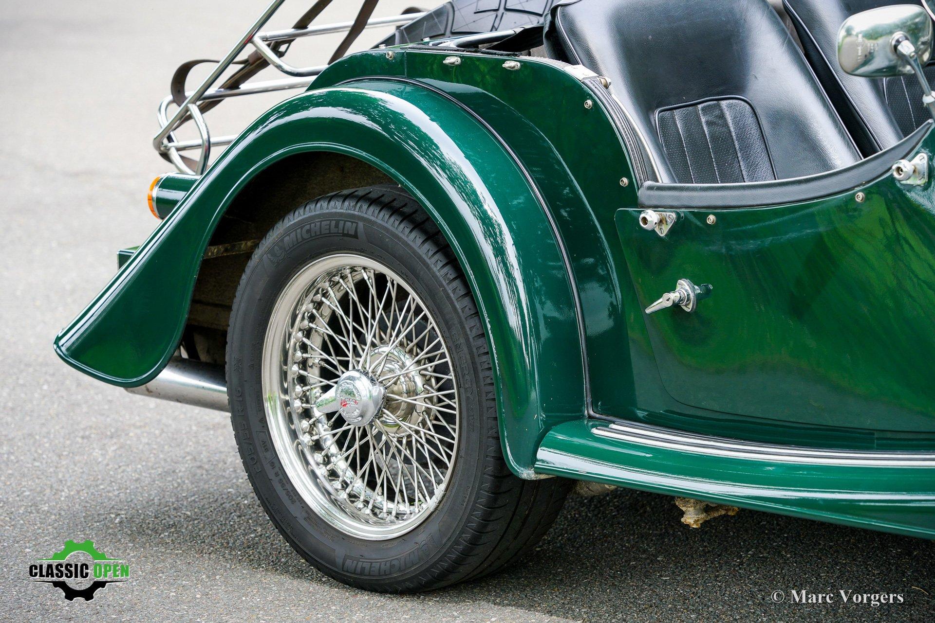 De brede RVS spaakwielen (6J x 16”) met brede banden geven deze Morgan een extra sportief uiterlijk en verbeteren de wegligging.