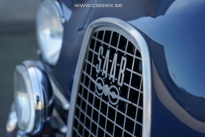 Exterior: The majority of the SAAB 96 Sport cars were or have later been painted red, most likely since SAAB became famous from their racing success and the cars they raced were red. What makes this SAAB 96 Sport stand out is that it is a beautiful dark blue original color. The car was restored around 2007, and the paint still looks very nice today. It is fitted with Ronal wheels and Toyo tires that suit the SAAB cars very well. The underneath of the car was painted with a black stone chip protection, and it is today 100% rust-free. All wearing parts like bushings and joints were replaced during the restoration, and the car has been driven 1,400 km since.