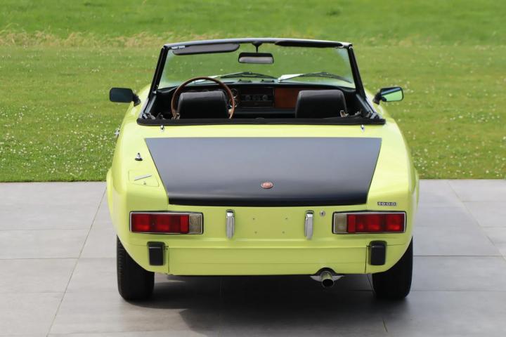 The beautiful design is still as attractive and timeless as ever. Characteristic of this type are the bumps on the bonnet. The Pininfarina emblem adorns the side. The beautiful striking yellow colour “Giallo Pagoda” (repainted paintwork) contrasts beautifully with the matt black bonnet and boot and gives the car a sporty look reminiscent of the Abarth version. The absence of the front bumper also contributes to this. The paintwork is in good condition. The car has alloy wheels. The black soft top is free of tears and also in good condition. The lines of the car are beautiful and we have not been able to find any rust on the car.