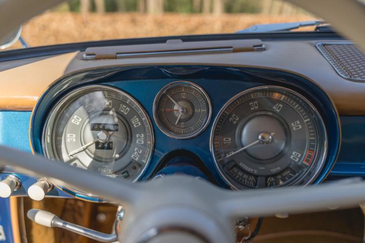 Limited collision damage was beyond the knowledge and skill of a previous owner, but with using original sheet metal sourced from the southern part of Germany and the dedication of a highly skilled restorer, the 503 shows itself just as beautiful again as it was at the time of delivery, in 1958.