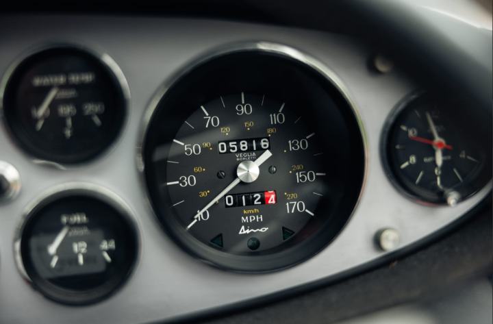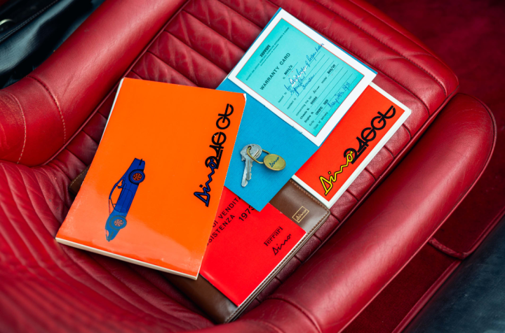 Peer behind the steering wheel at the column and you’ll even find the sealed customs tag from when the car was originally imported to the United Kingdom. We shouldn’t be surprised with the condition. This Dino has only covered 5,816 miles and has always been carefully stored and maintained.