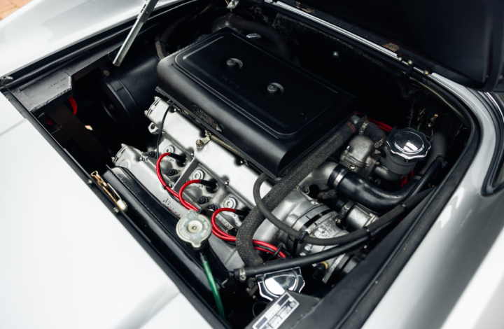 It should go without saying that chassis 06096 retains all its accompanying factory paraphernalia: its tool roll, jack (complete with leather pouch), and leather books pouch, containing the warranty card, service book, owner’s manual and spare-parts catalogue. The latter documents are all in excellent condition – a credit to the car’s former keepers.