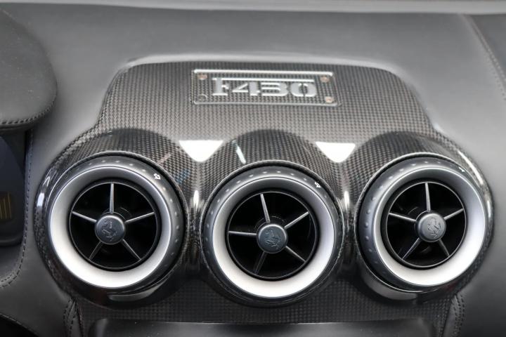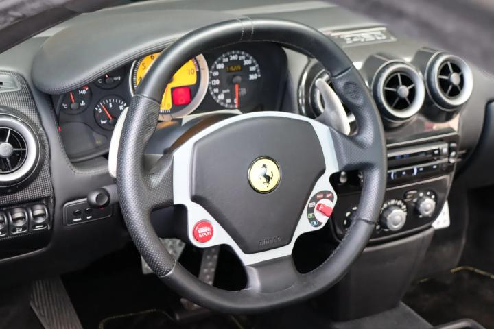 The Ferrari is finished in the stylish colour ‘Daytona Black’ (colour code 508). This colour is quite rare on the F 430 and contrasts beautifully with the bright yellow brake calipers and the distinctive ‘Scuderia’ Ferrari shields on the front wings of the car. The paintwork of the car is still original and in very good condition. The lighting and windows are also neat: everything points to the low mileage. The beautiful and optional ‘Challenge’ 19" alloy wheels are also in excellent condition with no damage. A fantastic extra on this car is the rear diffuser, which is made of carbon fibre. Pininfarina's design is still praised for its timeless design and details that nod to other legendary models, such as the mirrors referring to the Testarossa, the rear lights to the Enzo Ferrari and the large air intakes in the front bumper to racing cars from the 1960s.