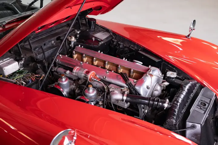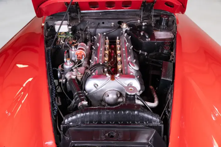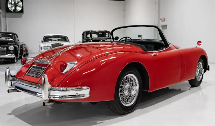 In addition to its accelerative performance, Jaguar took a page out of their motorsport handbook and offered the car with four-wheel disc brakes – making the XK150 the first production car to come so equipped. Finally, three body styles were also offered: coupe, drophead coupe (DHC), or two-seat roadster (OTS). Whereas the DHC was more touring oriented, the OTS roadster’s fully hidden roof and somewhat lighter weight made it the most sporting choice.