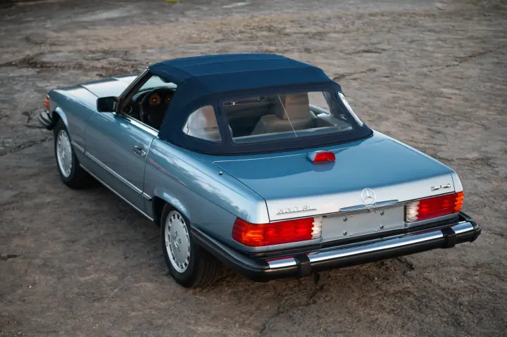 This absolutely STUNNING 560SL two top Roadster is as beautiful in person as the pictures reflect. We have posted 144 pictures to endorse our claim that this is a really special 560SL.If your online venue does not show 144 pictures go directly to WWW.JPFRAZIER.com to review the entire posting. The car was a one-owner car from Tucson, Arizona, until we bought and resold it to a local mature buyer in 2019 with 27,656 miles. Obviously, the car was not used much, and he traded it for another car. We again sold it to a mature buyer in North Carolina, who only had the car for a little over a year before bringing it back to us to resell, as they traveled too much to enjoy it. Both buyers put very few miles, but a lot of work into the car while in their possession. The car has never suffered from an accident or inclement weather. The car shows as a new example from 1986 in every way. When reviewing the pictures posted, note how straight the original car is as well as how crisp and new all bolts, stickers, trim, leather, carpets, door cards, wheel finish, engine compartment, trunk compartment, ALL LOOK NEW!!! This is an incredibly well-preserved example.