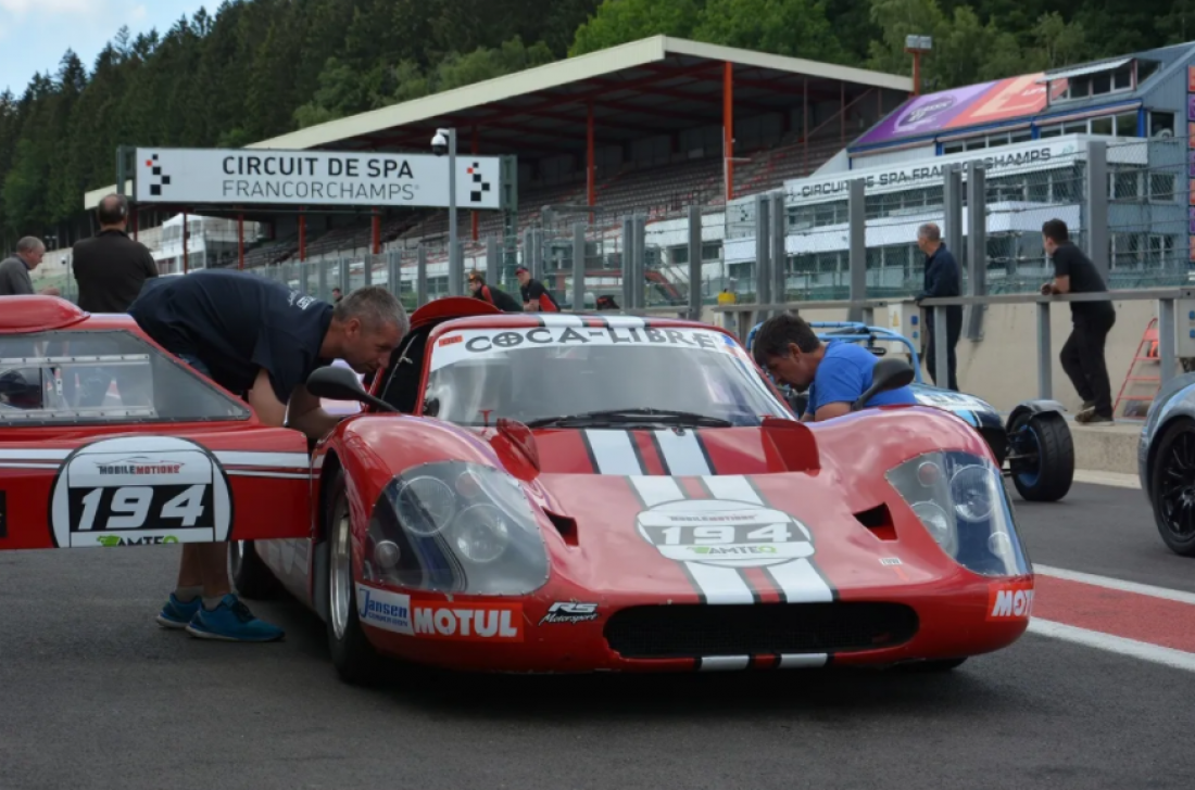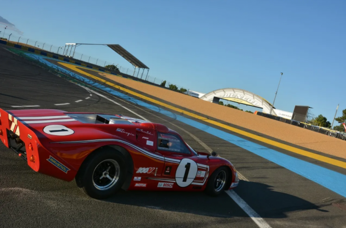 Heron MK4 GT Sports Racing Car Designed by Ross Baker, built by Ross Baker, Bob Gee and Chris Cooke in 1967 The Heron GT MK4 was a replica of the Ford GT40 MK4 Sports Racing car. Following the success of the Ford GT40 at Le Mans in 1967 Bob Gee and Ross Baker decided to team up and build this beautiful replica of the car to race the following season. They spent many hours reading and researching all they could to collect the information and specification to build the car they wanted. They decided to use a 327 ci Chevrolet Corvette motor, but the gearbox was a problem! They decided to design and build there own unit, it all started with a Ford Zephyr MK4 gears, a Ford V8 crown wheel and pinion with Ford Zephyr output shafts, Howard rotary hoe quick change gears and a Mini oil pump to pressure feed the oil to the gears. Bob made the patterns from the drawings of Ross to cast the aluminum housings, one cast. Dave Long Engineering did the machining and then they had the gearbox. They proceeded to draw plans for the steel monocoque chassis with fiberglass body panels. All the suspension was to be fabricated from steel with coils. Once the plans were finished, they started on the body plug. All the steel panels were cut from the drawings and ten either spot welded or pop riveted together. Bob made the male plug and glassed over this before sanding and filling it to finish. The car was two thirds finished, when the controlling body of the sports car racing decided to change the maximum capacity of engines to only 2000cc, which made the car obsolete before it had even raced! The car was put on hold and restarted, being completed in 1988 when it raced at the Whenuapai wings and Wheels meeting where it competed very well. However, straight line and powering through corners were out performing the Ferraris, but the 1967 brakes were not up to the cars performance. The car was sold to David Manton in 1990, who had a car collection in New Zealand and disappeared for a while. In 2008 Maurice O’Reilly called to say the car was for sale in Belgium after a short stay in the United States. It has been mentioned that the car was seized by European customs for three years, but no evidence of this. The car was then purchased by the current owner and supported by Mr. Adrias Stals in Latvia who prepared they car for European racing. The brakes have been upgraded, new coil-overs and the engine horsepower was increased. While the car still used the Heron designed and built transaxle. The car has successfully competed in a number of race meetings competitively finishing well amongst a mixed field, the last race this year at Le Mans in September 2018.