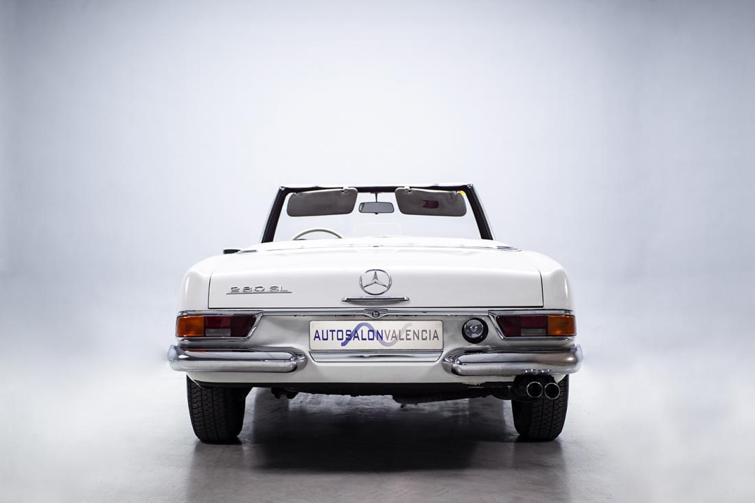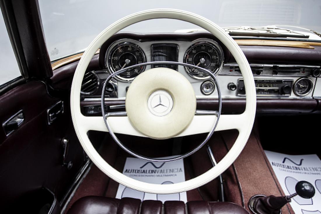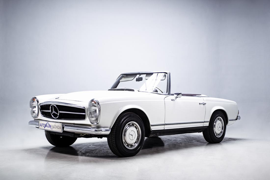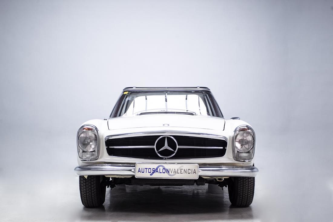 MERCEDES-BENZ SL 280 PAGODA de 1969. VIN: W113 044 1 0 006594 W 113 => MODELO PAGODA 044 =>SL 280 1 =>VOLANTE A LA IZQUIERDA 0 =>CAMBIO MANUAL 006594 =>Serial number - Ficha Técnica|Datos Mod.280SL Motor: Posición delantera ,6 Cilindros Cilindrada: 2778cc Diámetro x Carrera: 86.5x78.8m/m Compresión: 9,5:1 Potencia: 170cv a 5750 R.p.m.. Distribución: Arbol de Levas en Cabeza, 2 Válvulas por cilindro Alimentación: Inyección mecánica Bosch Cambio: 4 Velocidades Suspensión delantera: Independiente, Muelles helicoidales,amortiguadores telescópicos y barra estabilizadora Suspensión Trasera:Independiente de semi ejes oscilantes,Muelles helicoidales,Amortiguadores hidráulicos,Barra estabilizadora. Frenos: De disco en las 4 Ruedas , Servofreno y doble circuito Llantas: De chapa 6x14 Neumáticos: Radiales 185 HR14 Dimensiones lxanxal: 4285 x 1760 x 1305 Depósito Combustible: 82 Litros Peso: 1.415 Kg. Velocidad máxima: 200 Km/h. Unidades construidas 280SL: 23.885 Unidades *Este anuncio no es vinculante, puede contener errores, se muestra a título informativo y no contractual.*