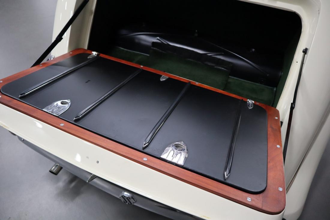 On December 21, 1937, this stately Jaguar SS 2.5 Liter Saloon left the factory to be shipped to Belgium. Here the car was registered on July 14, 1938. Many documents and the Heritage Centificate indicate that the original color was Suede Green. A somewhat dull color that fortunately was changed during the restoration to the also original Ivory. In combination with the beautiful green leather and tasteful wood finished interior, this is a real stunning combination.