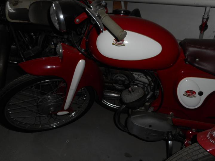 Mondial Italiaanse 50CC brommer uit de jaren 50. Compleet, rijdend en heel mooi. Duidelijkere fotos volgen nog. Grote keus in motor- en bromfietsen in de Stolze Collectie!