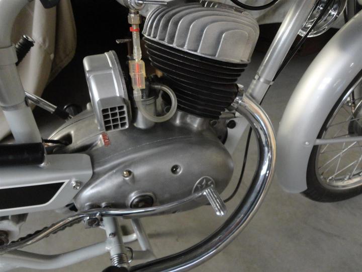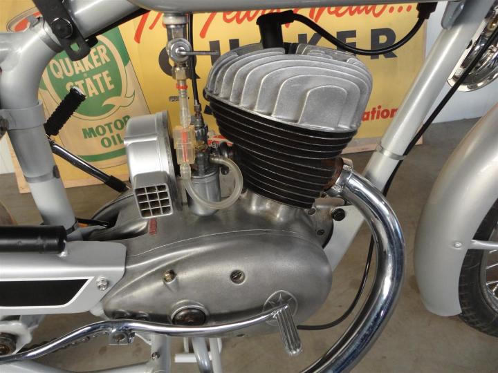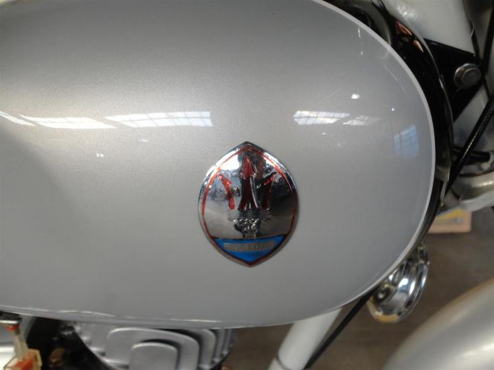 Perfect 100% gerestaureerd. Geheel originele 1958 Maserati 125 CC. Een prachtige, ZEER zeldzame Maserati motor. Slechts een klein aantal geproduceerd. Grote keus in motor- en bromfietsen in de Stolze Collectie!