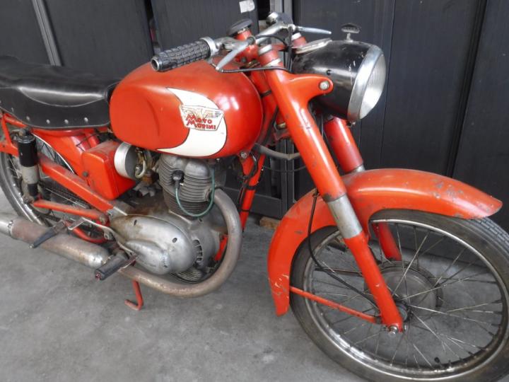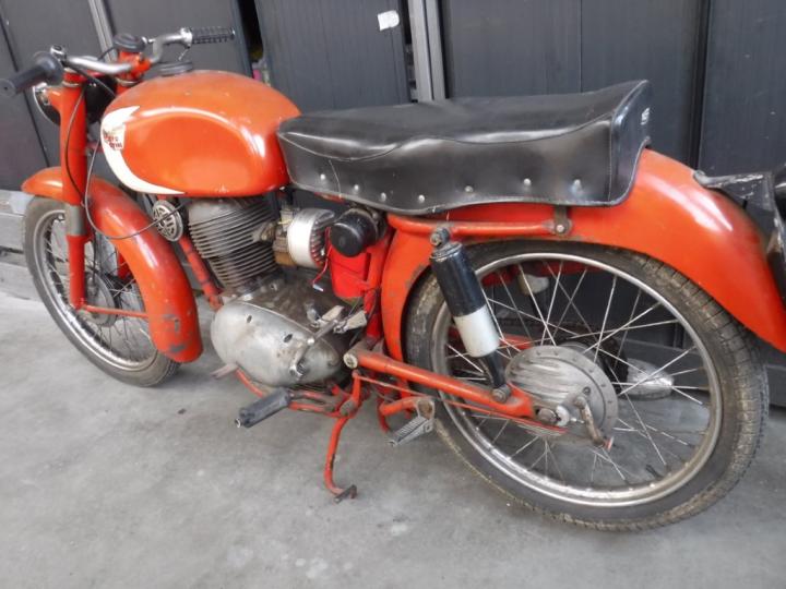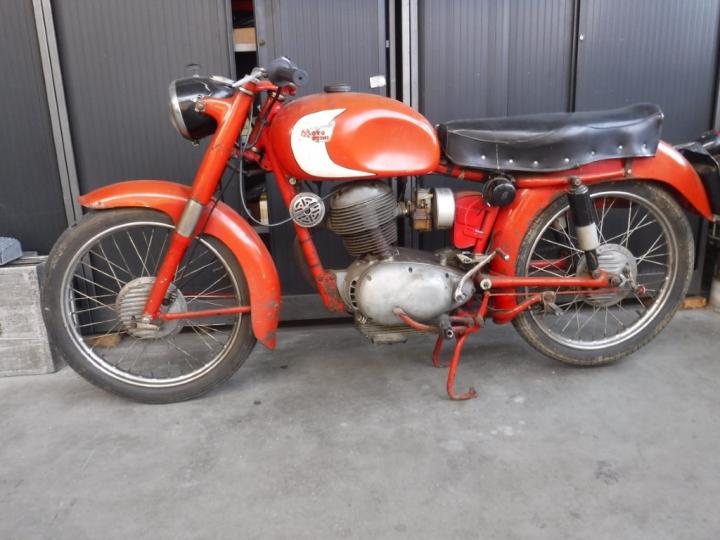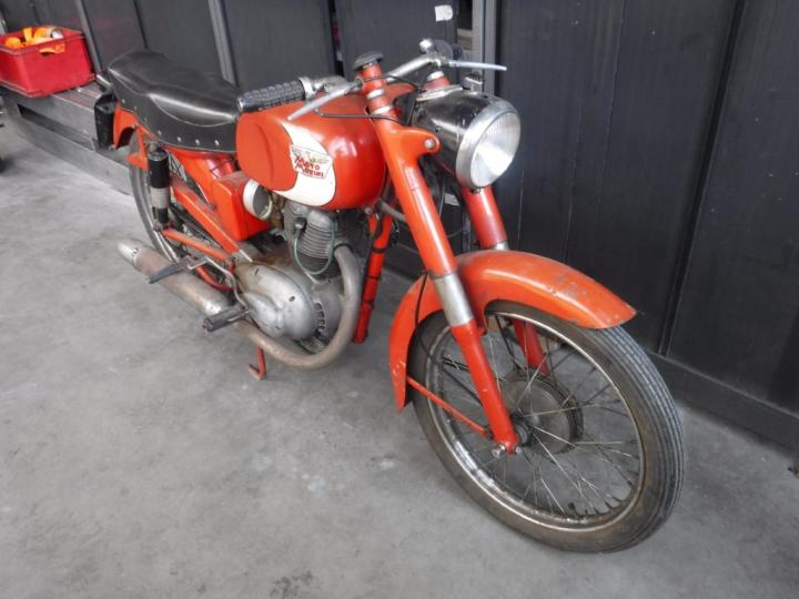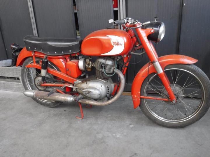 Hier een heel bijzondere 1958 Moto Morini Super Sport 175CC.Is niet perfect maar wel compleet en geheel origineel. Niet moeilijk om weer netjes te maken. Grootste keus in ECHTE klassiekers met meer dan 450 stuks in de Stolze Collectie: van project tot perfect !